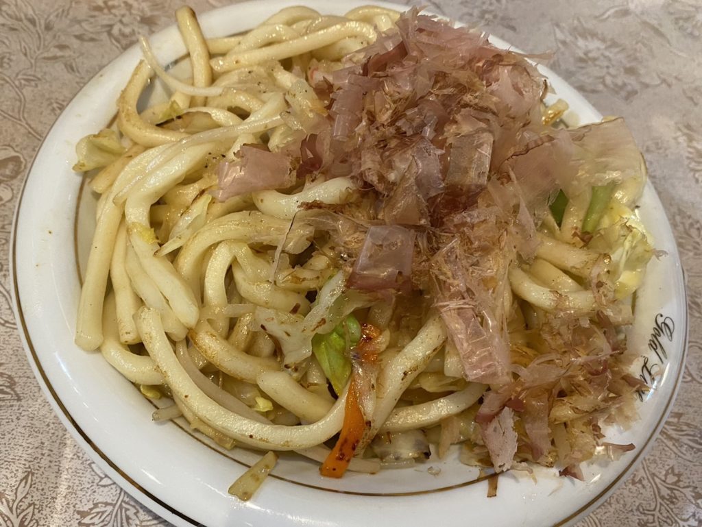 たまたまテレビ放送前に入店。テレビに映っている店主さんに作ってもらった焼きそばと焼うどんを食べながら10分弱、店主さんにテレビの解説してもらい、大笑いしました。優しい店主さんでした。