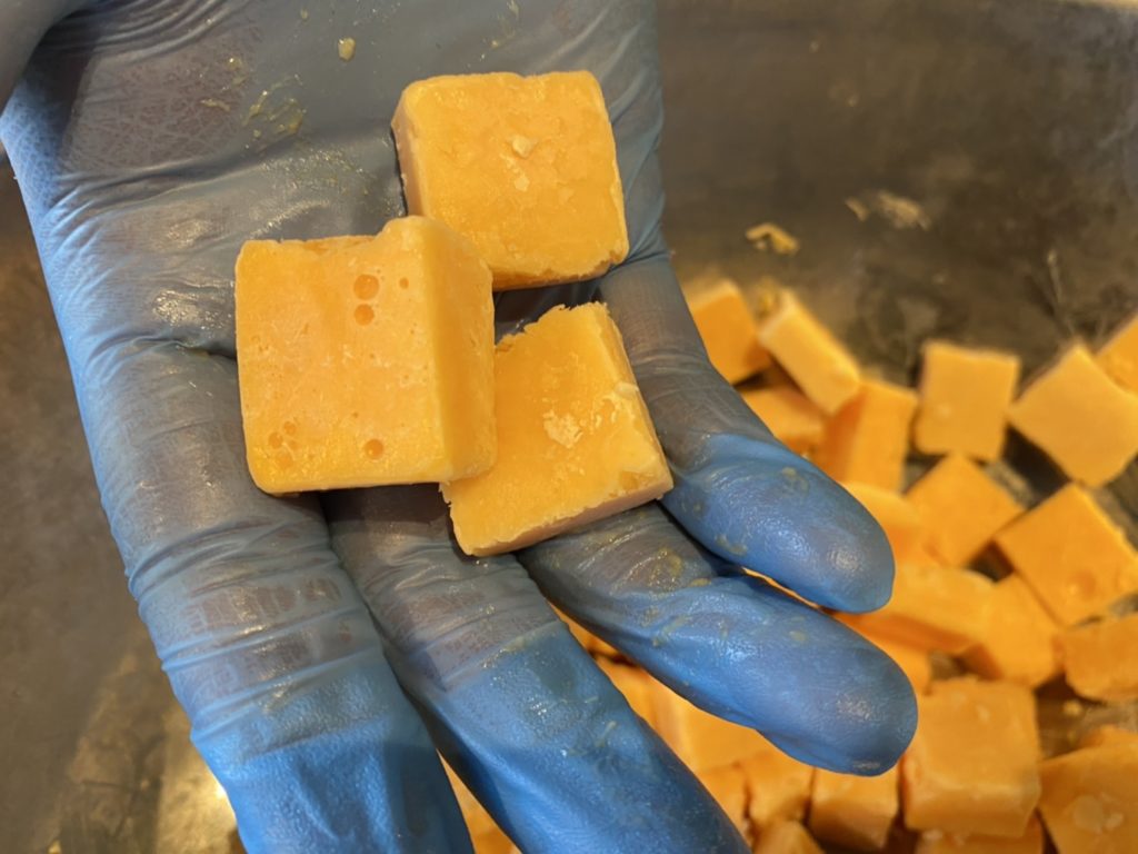 いちご味のモンブランをご注文後、目の前で絞ります。中にはプリンをカタラーナ風にした口溶けがいいアイスのようなプリンです。モンブランフレーバーは季節ごとに変わります。