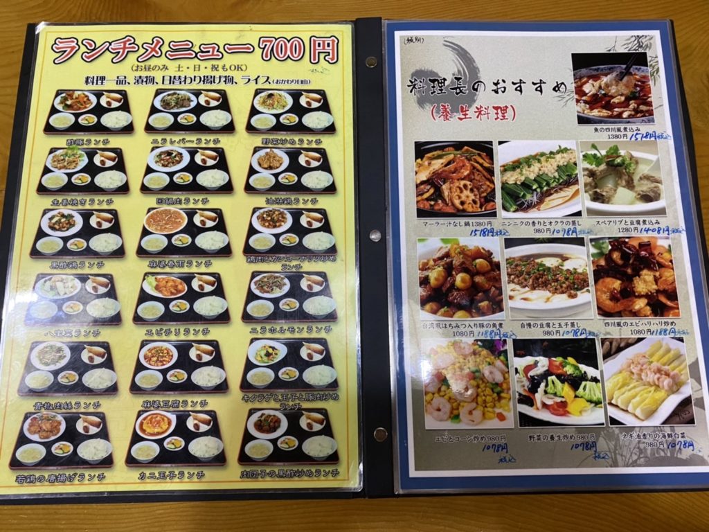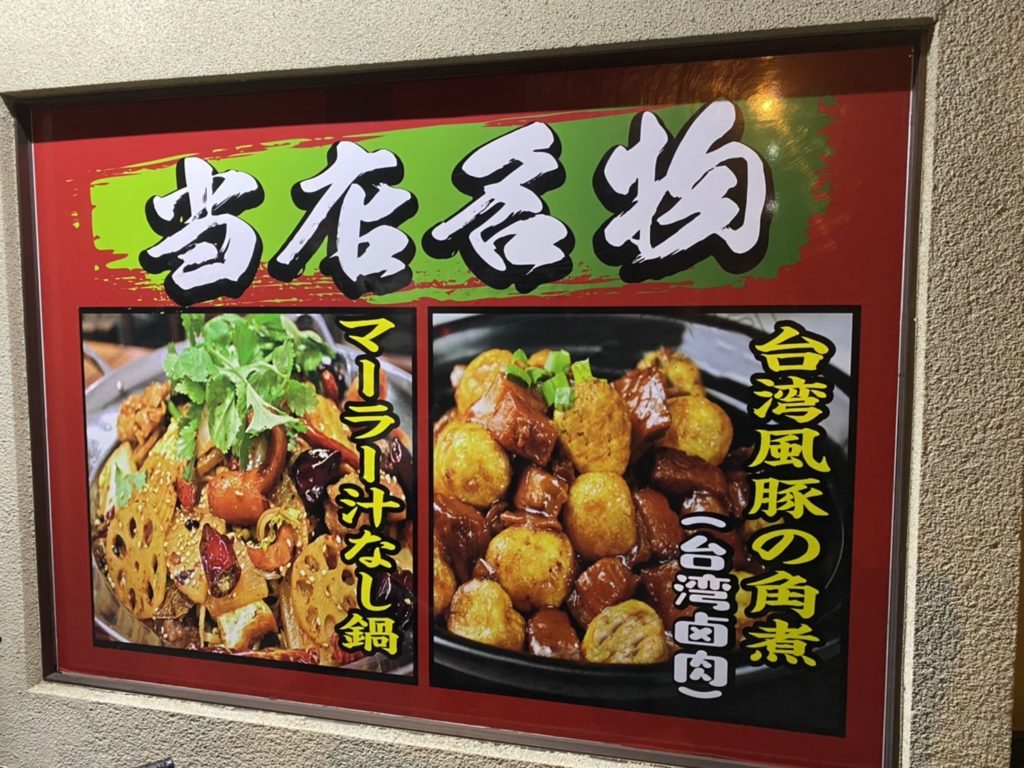 名物は台湾風豚の角煮とマーラー汁なし鍋です。野菜お粥や海鮮お粥などもあります。中国料理も食べれます。ランチはセルフでコーヒーが一杯飲めます。